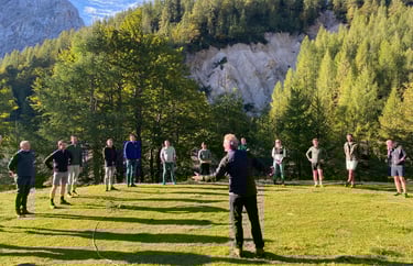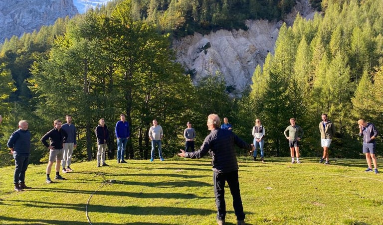 Letting go of my corporate career aspirations, I stepped into life as an independent consultant — the trickster role, as the natives call it — able to weave together professionalism, intuition, and my deep trust in nature. Over the years I added embodied learning, voice dialogue coaching, improv theatre, and training as a mountain guide.