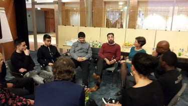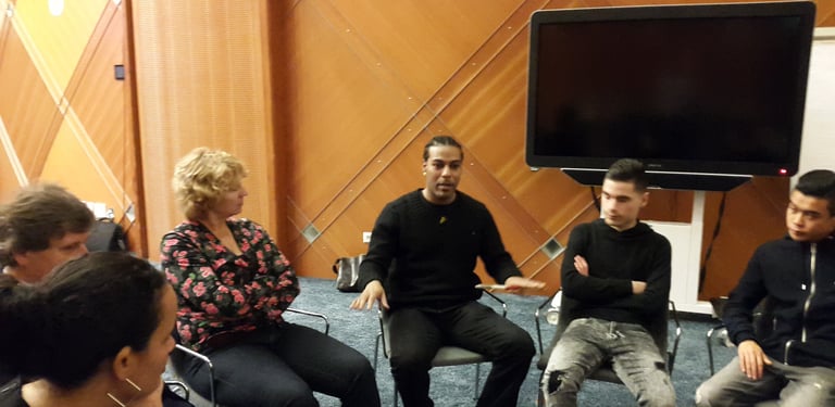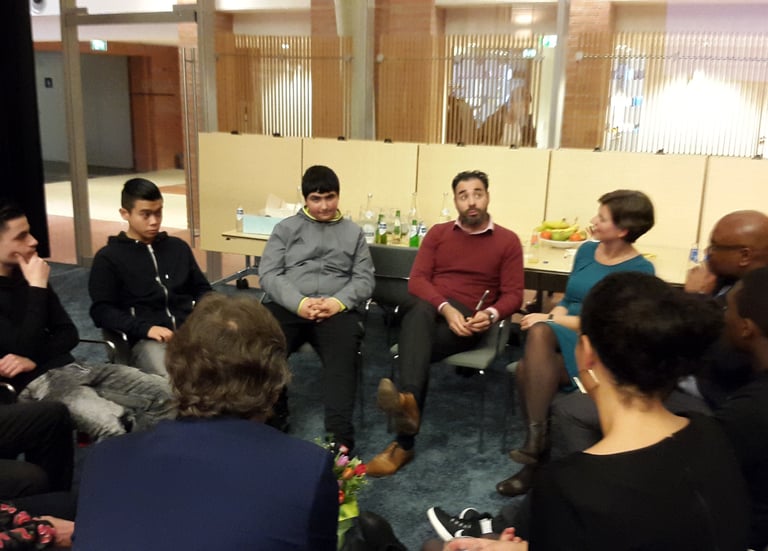 5. Whole-system dialogue: The groups and other parties involved are invited for a whole-system dialogue: youth, elders, police, entrepreneurs, social workers, and local authorities. A process of connecting and co-creating.