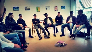 Social workers join in a train-the-trainer model. Learning the dialogue method hands-on. This can help them provide follow-up.
